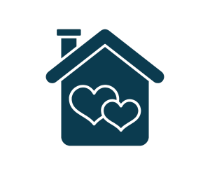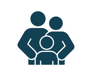 Icon of a family with two adults and one child, all in dark blue on a black background.