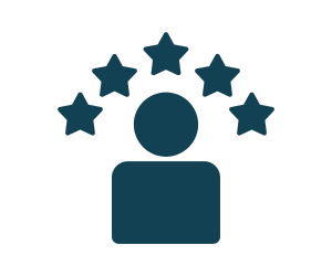 Icon of a person with six stars above their head, representing achievement or recognition.